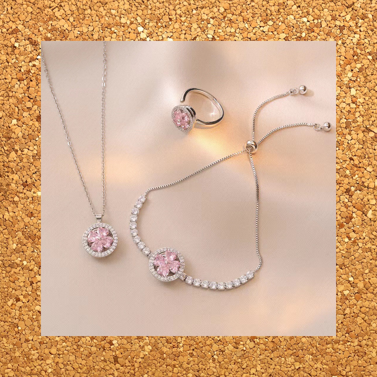 silver and pink jewelry